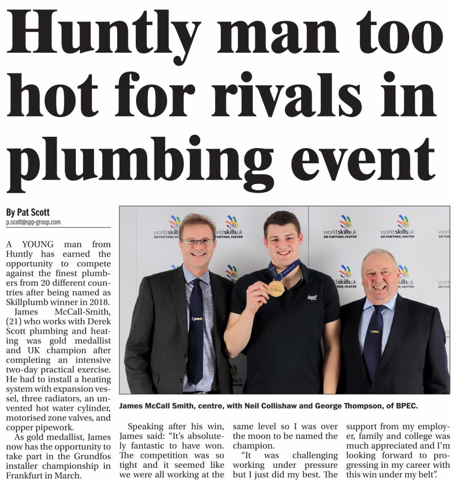Plumber of the Year 2016, Shaun Scott, former pupil of The Gordon Schools, adds another award to his growing list. For further details, see the article published in The Huntly Express on May 25th, 2018.