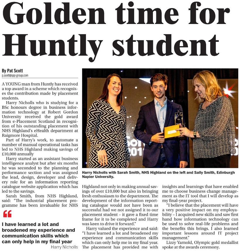 Recent Graduations featured in ’The Huntly Express’ include Myles Cormack, Scott Law, Benjamin Mitchell and Lindsay Reid, Fiona Marshall, Hannah Ingram, Deborah May, Rosemary Pope, Euan Morrison, Annah MacLennan, Lynn Angus, Jayne Stuart. To see the newspaper articles and photographs please click on the links.